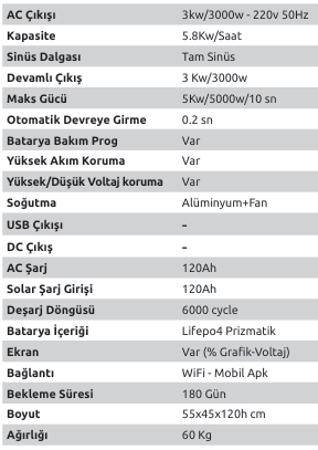 Kombi, TV, PC, Aydınlatma, Modem, Buzdolabı şeklinde 10-30 saat kullanım