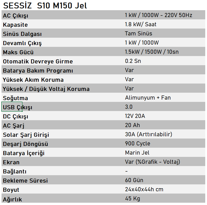 Sessiz S10 M150 Jel 1kw 1.8kw